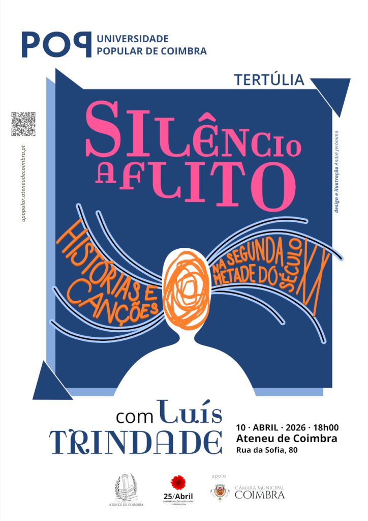 Na sexta-feira, 10 de abril, pelas 18 horas, teremos nas instalações do Ateneu, na rua da Sofia, número 80, o Professor Luís Trindade a falar-nos e a falar connosco sobre “Silêncio Aflito -histórias e canções na segunda metade do século XX”. Esta tertúlia integra o programa das Comemorações Populares do 25 de Abril em Coimbra. […]