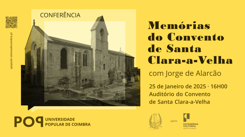 No próximo dia 25 de Janeiro vamos recuar ao século XIV pela mão do Professor Jorge de Alarcão. O nosso convidado irá centrar-se nas “Memórias do Convento de Santa Clara-a-Velha”, convento que a Rainha D. Isabel fundou no sítio de um anterior mosteiro e junto do qual instalou também um paço e um hospício. Estes espaços e as suas vivências, por onde passaram reis e rainhas, freiras e outras “mulheres públicas”, mas também o teatro vicentino na sala onde antes se consumara o assassínio de Inês de Castro, podem ser abordados com distintos olhares.